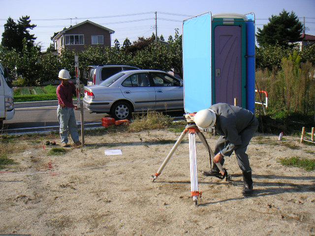 遣り方とは、建物の水平をとるために建物の外周に板を水平に張って目印にし、基礎工事のときの水平を保つための先人の優れた知恵です。建物は、なんといっても基礎工事が大切です。(何事も、基礎は大切ですが…)現在は水平をだすための便利なレベル測定器が主流ですが、太古から行われてきたこの遣り方、水盛り(みずもり)とも呼ばれています。その名の通り、器に盛られた水に管(ホース)を入れ、その先が常に一定である水の性質を利用して水平をだしたようです。