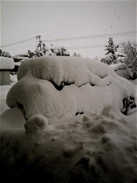 車が、「蔵王の樹氷」状態になっている。
