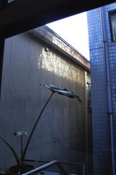 日差しがタイルに反射して、隣の建物に映り、