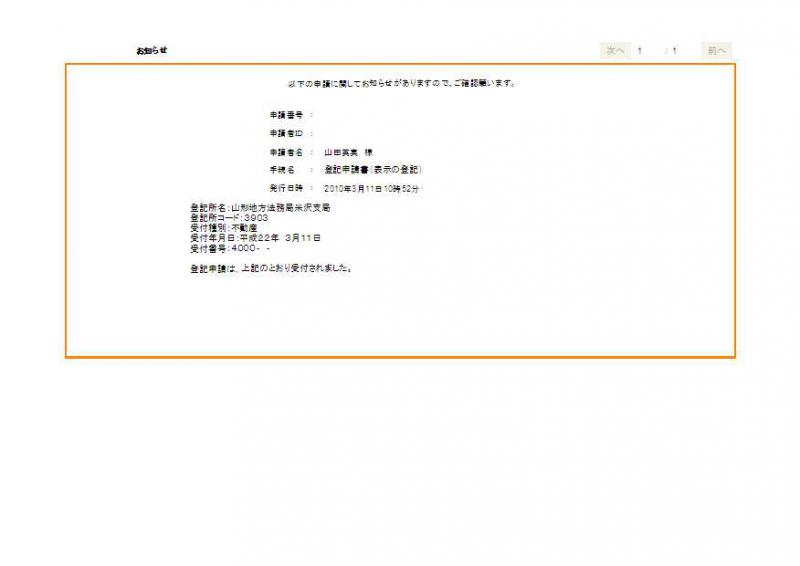 本日、お客様より依頼いただいた案件の書類が揃ったのでオンラインにて管轄である山形地方法務局米沢支局へ申請したところ、受付番号が4000番でした。