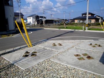 駐車場のクローバーマークに、