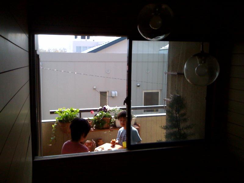 子供達は早速出来上がった焼きおにぎりを持ってベランダへ。