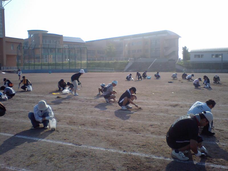 今回はプール周りとグラウンド、花壇の除草作業を行いました。
