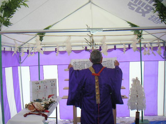 ようやく地鎮祭の日を迎えました。今朝から寒の戻りか、解体工事が終わってまっさらにになった敷地は、真っ白な雪に覆われました。寒さは厳しかったですが、雪の白さがかえって神聖さを増しているように思えました。ほら貝の音が響き渡る、厳かな地鎮祭でした。