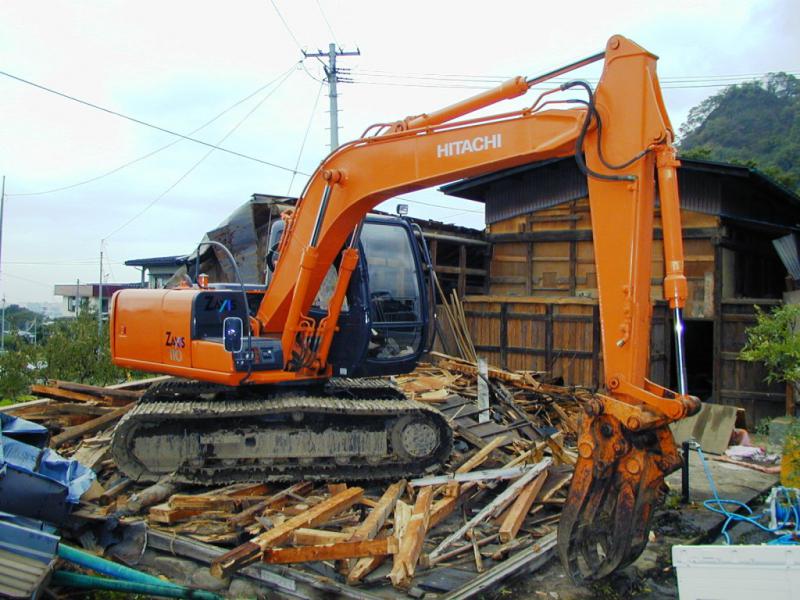 さて、現代の取りこわしは、写真のような重機をつかって簡単にこわしてしまいます。
