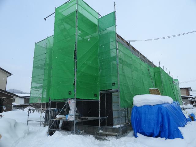 瑕疵保険上重要とされる、外壁下地の透湿防水シートの施工が完了しました。