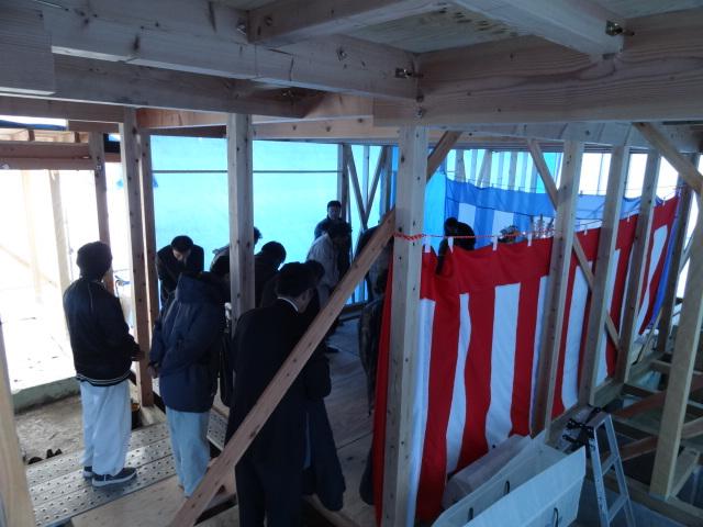 雪が舞い散る中の上棟式となりました。
