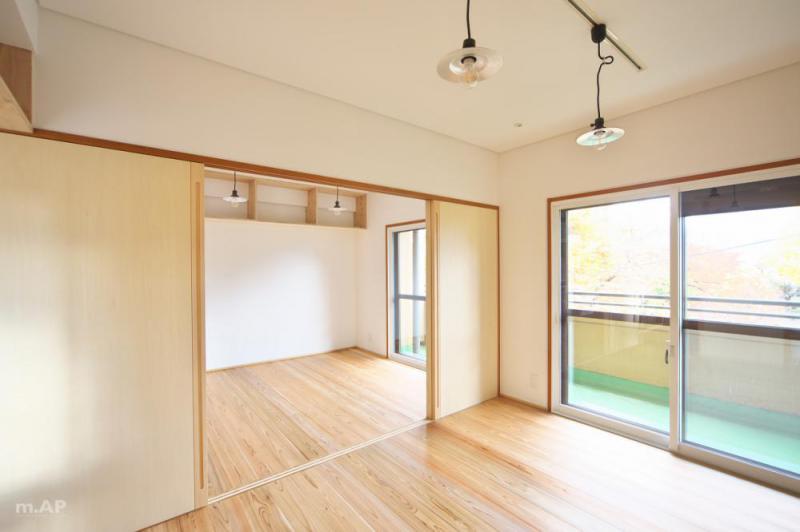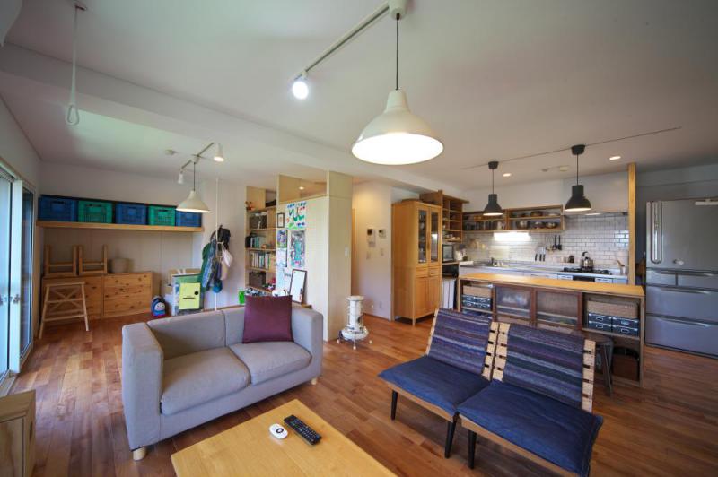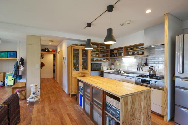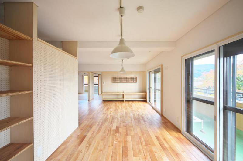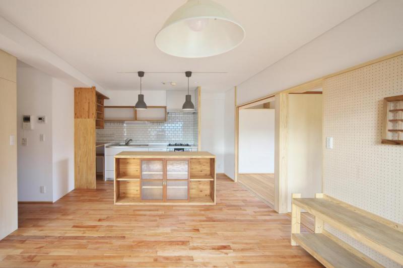 〈とおかまち住処 ―マンションリノベーション―〉 設計データ■所 在 地 :山形県山形市■用 途:マンション住戸■構造規模:鉄筋コンクリート造/地上11階建て(1990.03竣工)■住戸占有面積:77.57u(23.4坪)■設 計:2015.05〜2015.07■工 期:2015.09〜2015.10■設計監理:葛燗熄泄F設計工房■施 工:升川建設梶。撮 影:長岡信也