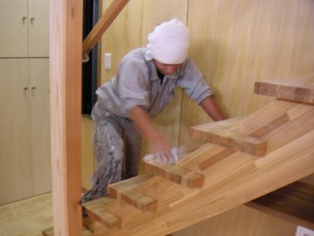 家全体が手作りであることを実感する作業風景です。